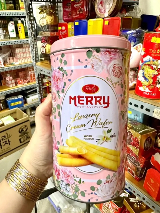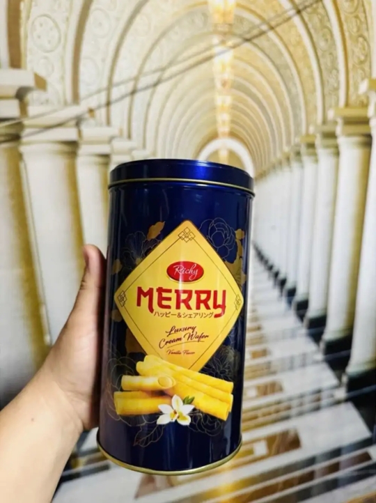- Bánh kem quế lon Merry 208g giòn xốp, có dạng hình ống quế lạ mắt, bên trong là lớp kem mang những hương vị khác biệt đem đến bất ngờ cho người ăn.