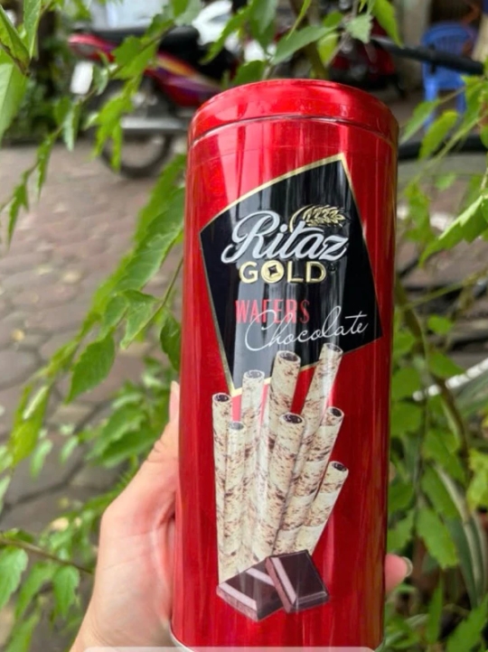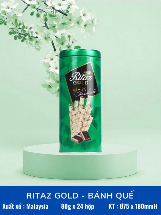 Bánh quế socola Ritaz Gold lon thiếc gói quà tết 2025