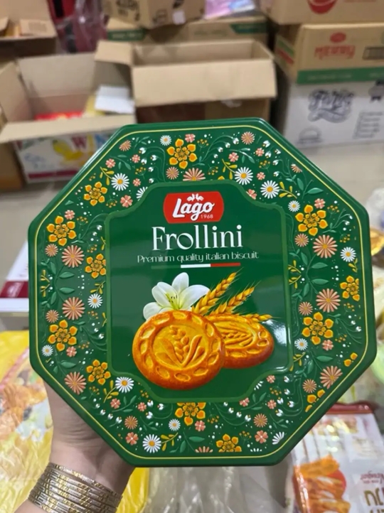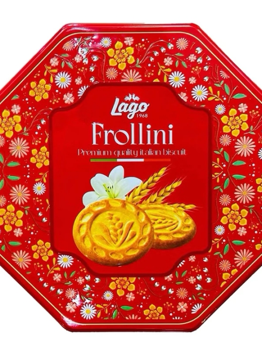 Bánh quy bơ lago Frollini là sản phẩm của thương hiệu Gastone Lago Elledi, được sản xuất theo công nghệ tiên tiến trên dây chuyền hiện đại. Theo đó, sản phẩm không sử dụng hóa chất, chất hóa học, chất bảo quản độc hại, đảm bảo an toàn với sức khỏe người tiêu dùng. Bánh quy bơ Lago Frollini có thành phần gồm bột mì, đường , dầu thực vật ( dừa , hướng dương ) , trứng 8% , chất tạo xốp : amoni hydro cacbonat natri hydro cacbonat , bột sữa gầy , protein sữa , mật ong , muối . có thể chứa một lượng nhỏ hạt đậu nành và hạt phỉ … Công thức chế biến và tỉ lệ pha trộn các thành phần đặc biệt tạo nên sản phẩm có hương vị thơm ngon, hấp dẫn, giòn tan khi ăn và phù hợp với mọi lứa tuổi. Bánh quy bơ Lago Frollini được đóng hộp tiện dụng, dễ bảo quản và dùng được lâu. Bạn cũng có thể mang theo dễ dàng trong những chuyến đi chơi, picnic để cùng chia sẻ với mọi người hay dành làm quà tặng cho bạn bè, người thân.