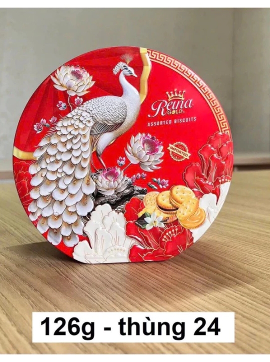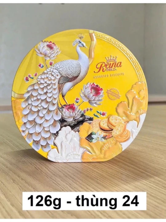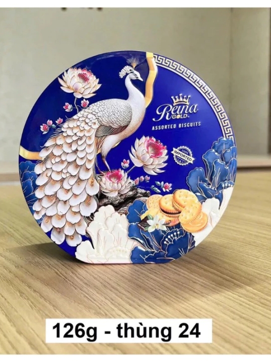 Bánh quy bơ Reina in hình chim công hộp thiếc 126g nhập khẩu từ Malaysia với hương vị thơm ngon, bổ dưỡng được sản xuất trên dây chuyền công nghệ hiện đại sử dụng các nguyên liệu tự nhiên, an toàn cho sức khỏe