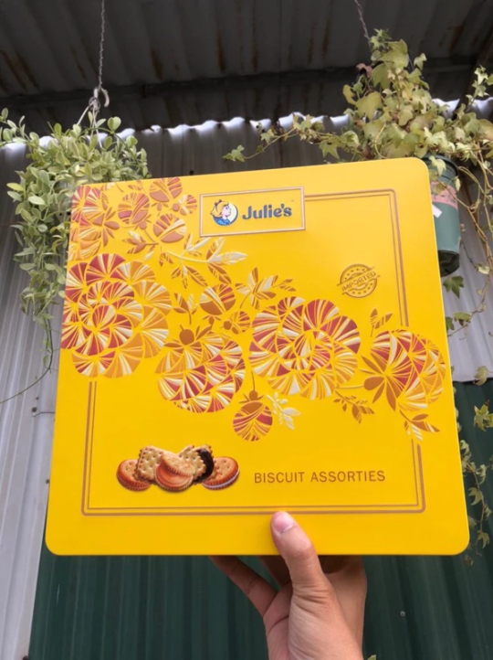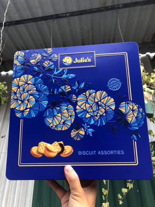 Bánh quy Julie's Assorted Biscuits 360g HT vuông lớn Hộp thiếc hình hoa gói quà Tết 2025 siêu đẹp