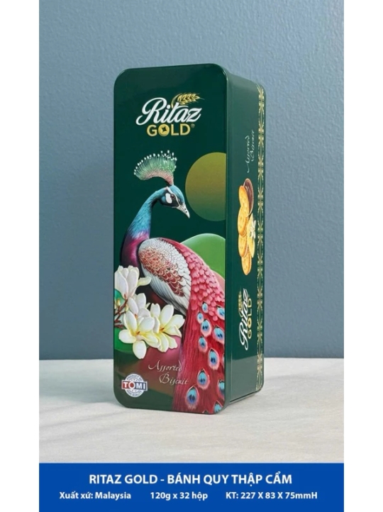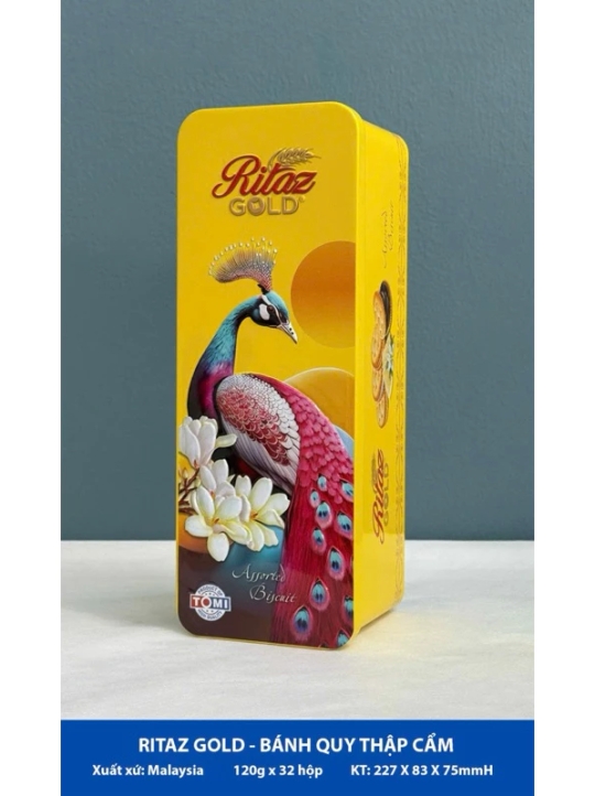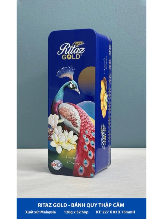 Bánh Quy Ritaz Gold Hộp Thiếc Chữ Nhật 120g gói quà Tết 2025 siêu đẹp