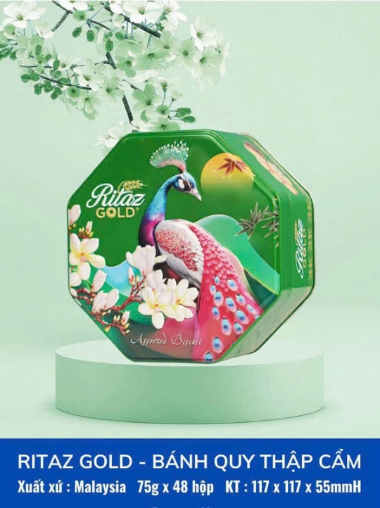 - Bánh Ritaz là sản phẩm rất thích hợp để biếu tặng, sản phẩm phổ biến được sử dụng trong các lẵng, giỏ quà Tết. Bánh Ritaz được thiết kế với nhiều mẫu mã và màu sắc, thiết kế hộp thiếc sang trọng.