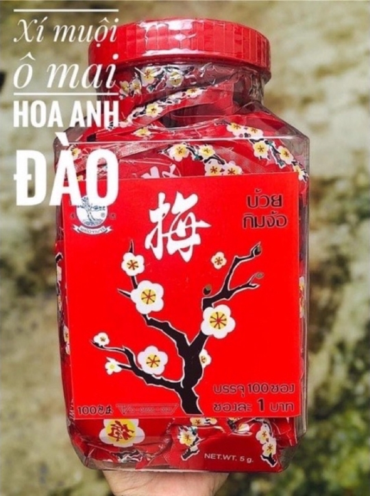 • HỦ 100 gói Xí muội (ô mai) hoa đào Thái Lan - hương vị tuổi thơ