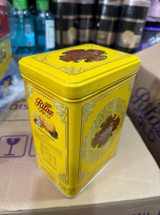 Bánh quy Ritaz hộp thiếc trụ đứng, in hình rồng vàng, hoa sen, núi phú sĩ 180g hàng chuẩn Malaysia