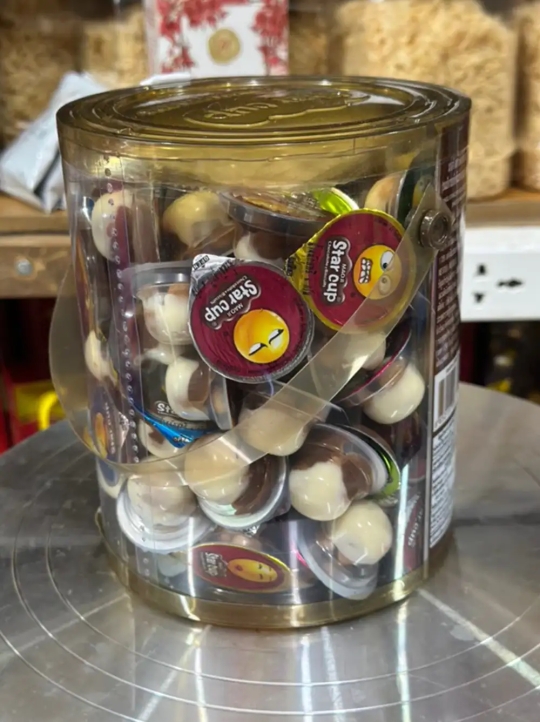 Bánh Quy socola viên Star Cup Thái Lan với 1hộp gồm nhiều cốc bánh nhỏ xinh cùng thìa xúc xinh xắn. Cảm giác khi ăn thơm mùi socola , beo béo vị sữa, giò giòn của mấy viên bánh quy. Thơm ngậy mà không qua ngọt. Đặc biệt là mỗi cốc bánh lại có một biểu cảm icon cực dễ thương chỉ nhìn thôi là hết sầu rồi, tha hồ mà nhâm nhi nha.