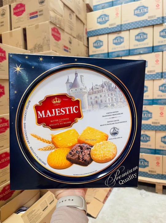 Date xa 9/ 2025 Bánh hộp thiếc Majestic 382g kèm túi xách giấy