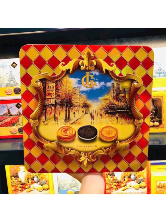 Tặng quà Tết Đẹp-Bánh quy hỗn hợp Lucky Gold 320g - Hộp Thiết
