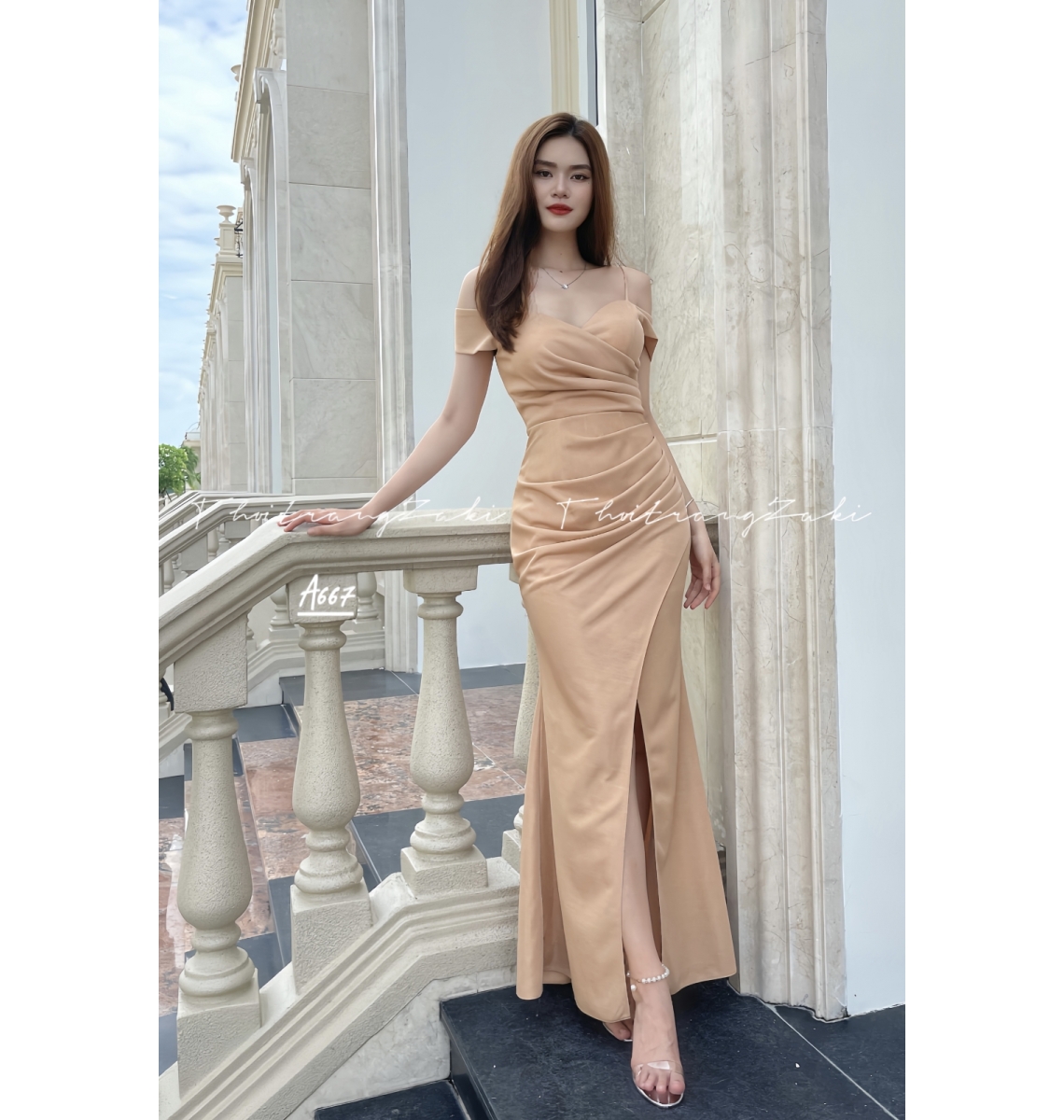 -Thiết kế đầm dạ hội body xẻ tà Sang Trọng